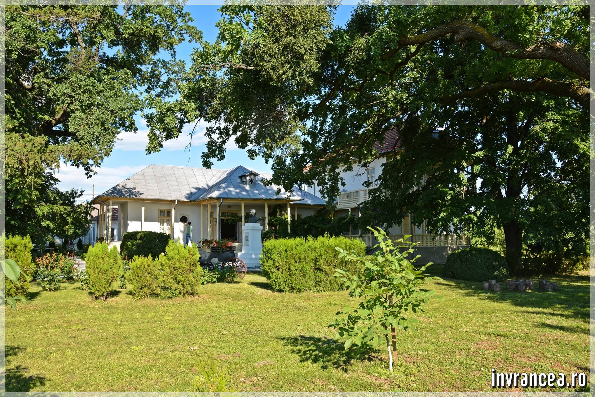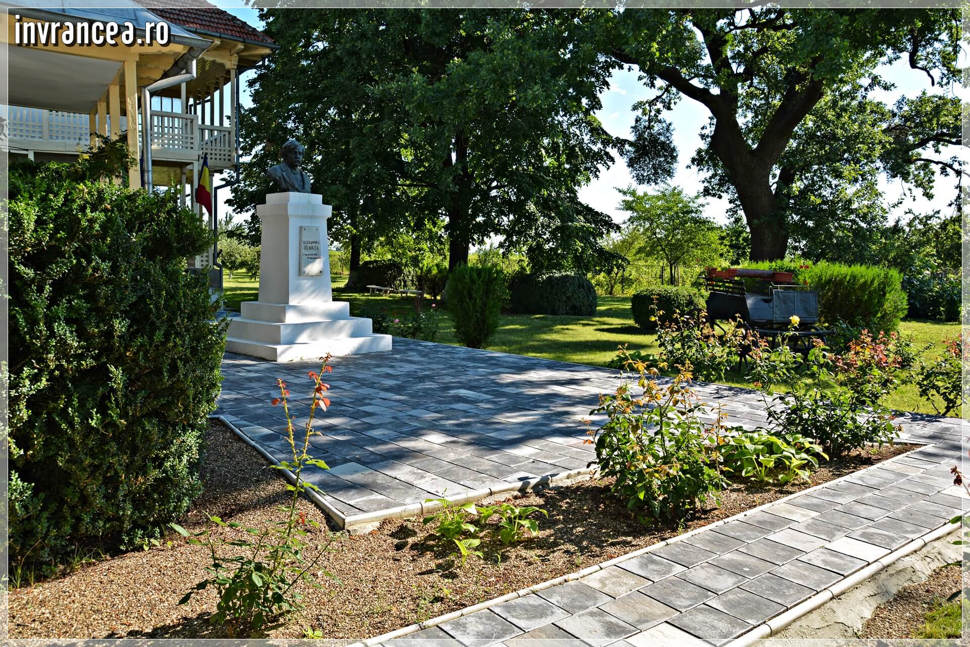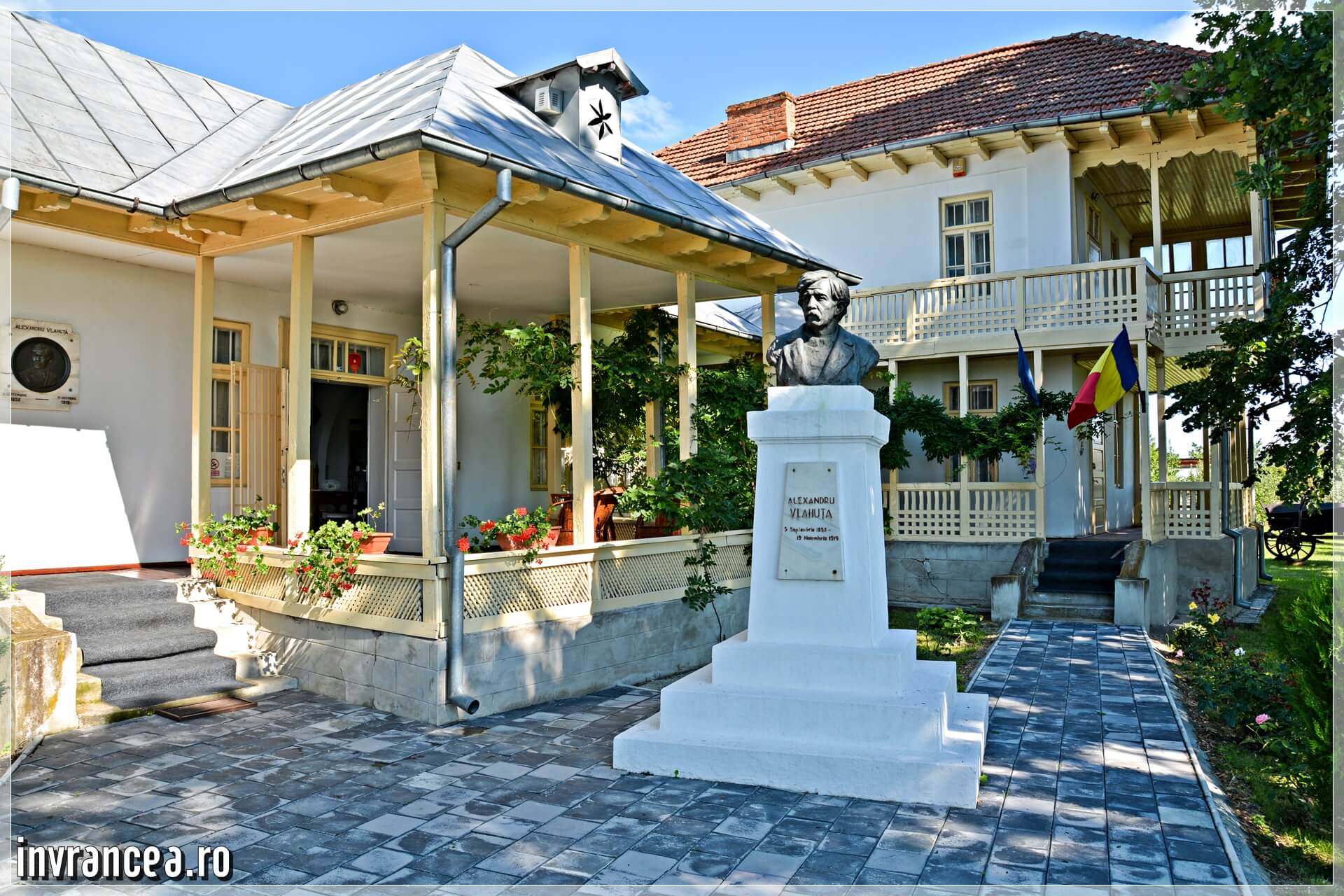 Aici şi-a petrecut scriitorul câţiva ani din viaţă în casa „situată în mijlocul unei grădini, de unde – la intrare – îţi urează: „Bun venit”, chipul blând, cioplit în bronz, al lui Alexandru Vlahuţă. Imobilul are parter şi etaj. Dintr-un mare cerdac – de la etaj – privirea ţi-e desfătată de „dealurile domoale ale Bordeştilor şi Coteştilor” având la poale verdele „crud” al câmpiei. În depărtare-s viile”.