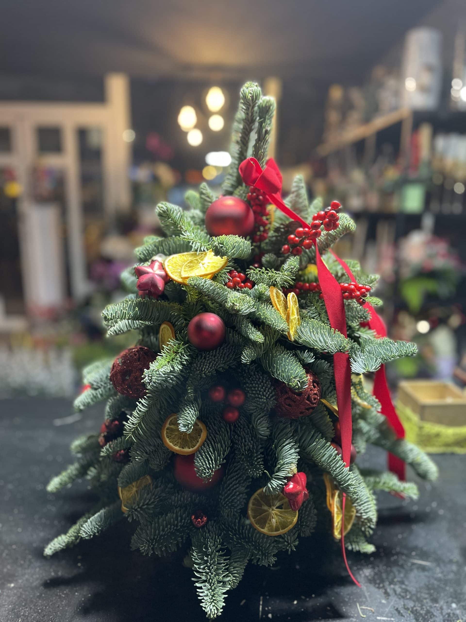 Nu toate locuințele sau birourile permit un brad mare. În astfel de cazuri, aranjamentele compacte sunt soluția ideală. Modele precum