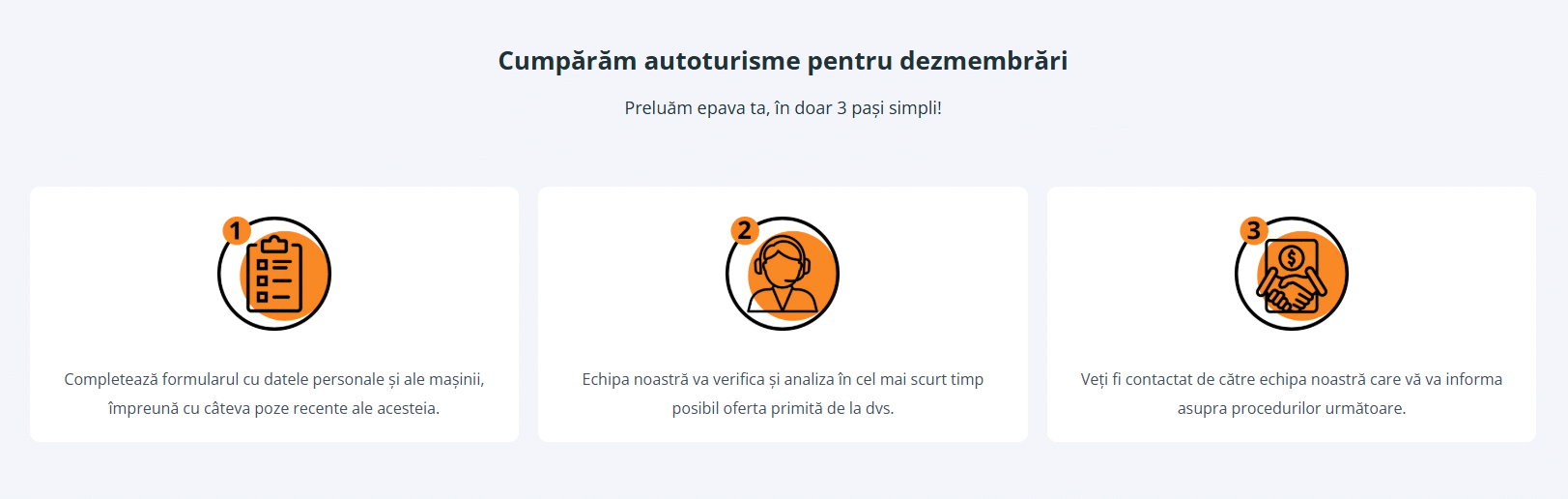 Procedura este gândită în doar câțiva pași clari. Proprietarul completează datele mașinii și oferă câteva informații de bază despre starea acesteia. Echipa analizează rapid situația și revine cu un răspuns, iar ulterior sunt comunicate detaliile privind preluarea și pașii următori. Totul se desfășoară transparent, fără obligații ascunse.