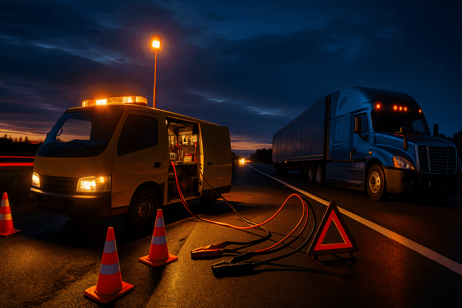 Echipă tehnică și autospecială dotată pentru verificări, diagnostic și remedieri care se pot face în siguranță la fața locului. Scopul este repunerea camionului în trafic fără a mai apela imediat la tractare sau transport până la atelier.